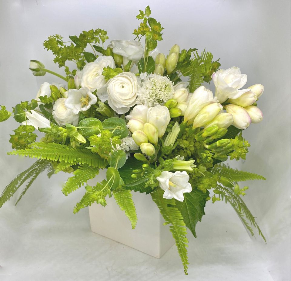 The image shown is an example of the overall style and scale you can expect from our work. Because flowers are seasonal, certain varieties — like peonies — may only be available at specific times of the year. While substitutions may be made, we always select the most beautiful blooms of the season to ensure your arrangement is full, fresh, and unique.