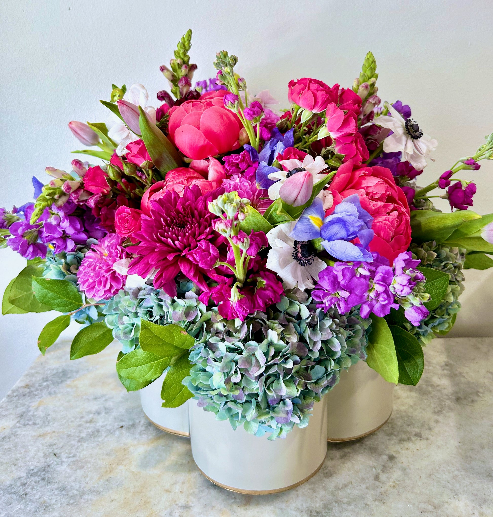 The image shown is an example of the overall style and scale you can expect from our work. Because flowers are seasonal, certain varieties — like peonies — may only be available at specific times of the year. While substitutions may be made, we always select the most beautiful blooms of the season to ensure your arrangement is full, fresh, and unique.